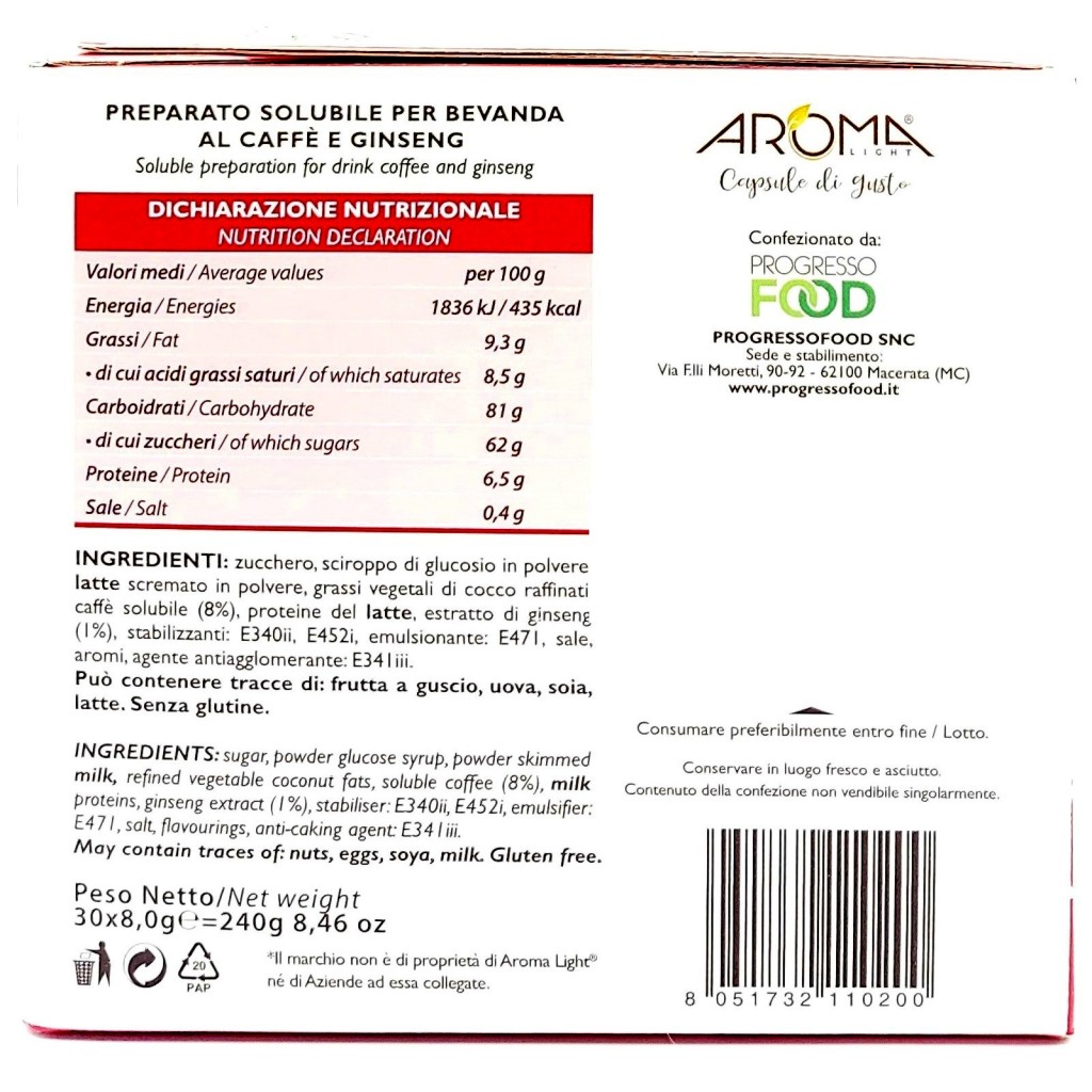 Aroma Light 30 Capsule Di Gusto - Ginseng - Compatibile Nespresso