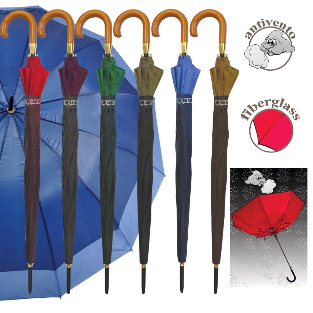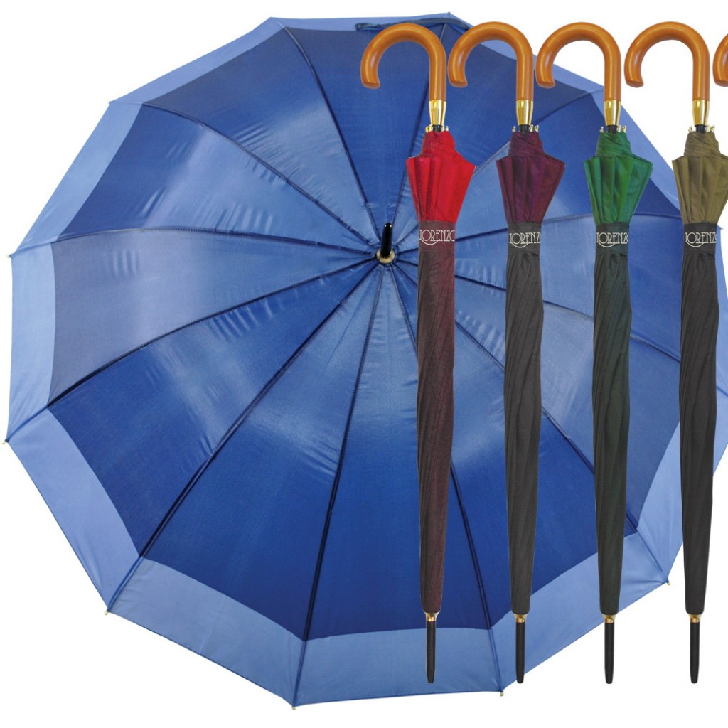 Lorenzo Ombrello Grande Con 12 Bacchette Automatico - Manico Marrone