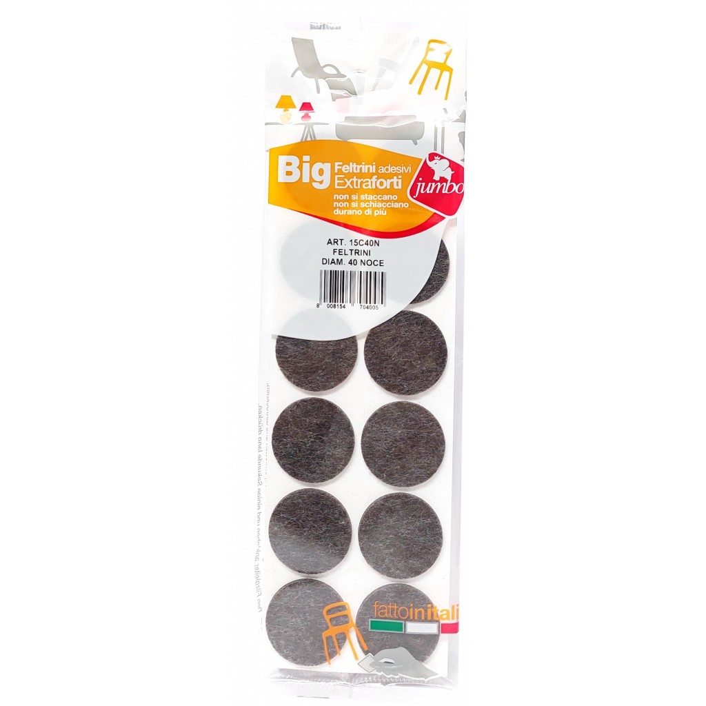 12 Feltrini Tondi Grandi - Diametro 40mm - Color Noce - Autoadesivi