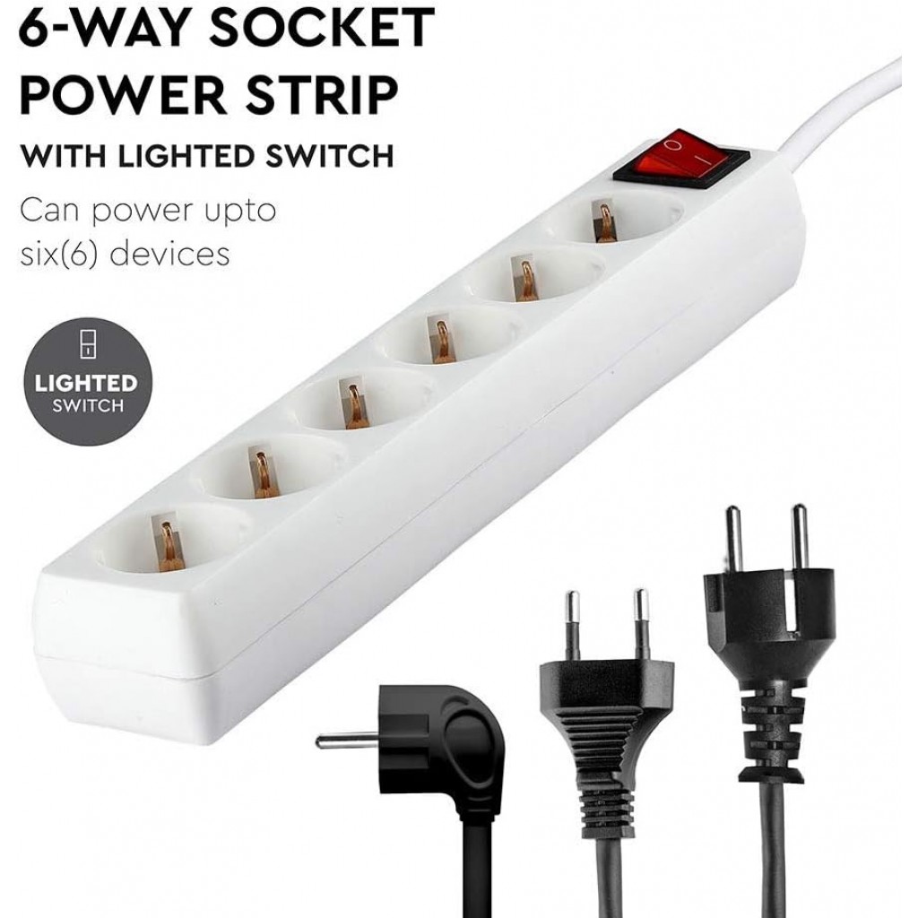 Multipresa 6 Posti Universali Con Interruttore - Cavo 1.5m - Spina 16a