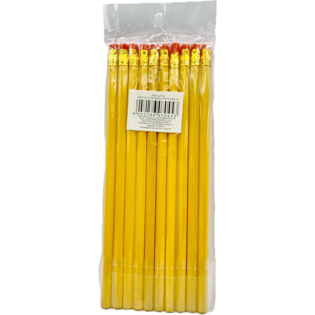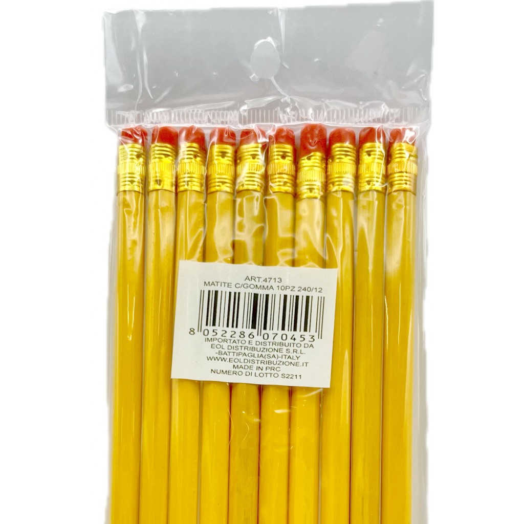 10 Matite Da Disegno Da 19cm Con Gomma
