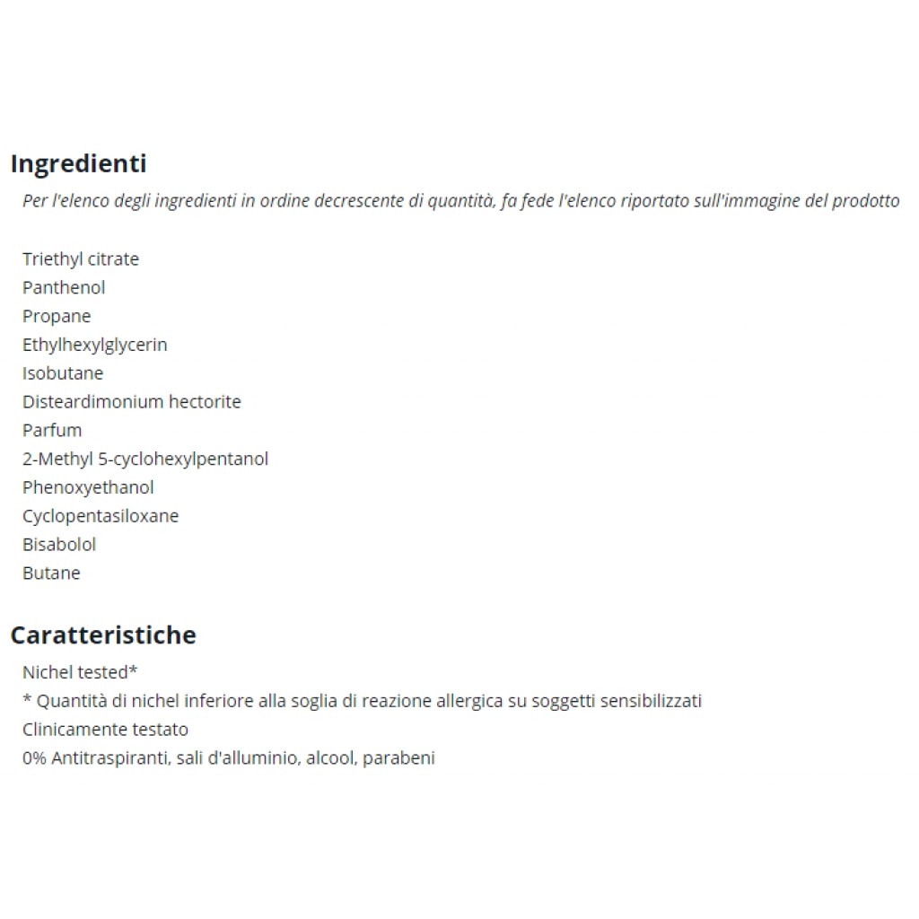 Estendi la ricerca a: deodoranti personali, igiene e cura della persona, infasil, deodorante, spray, 150ml, donna, puro, pelli, sensibili, nichel, tested