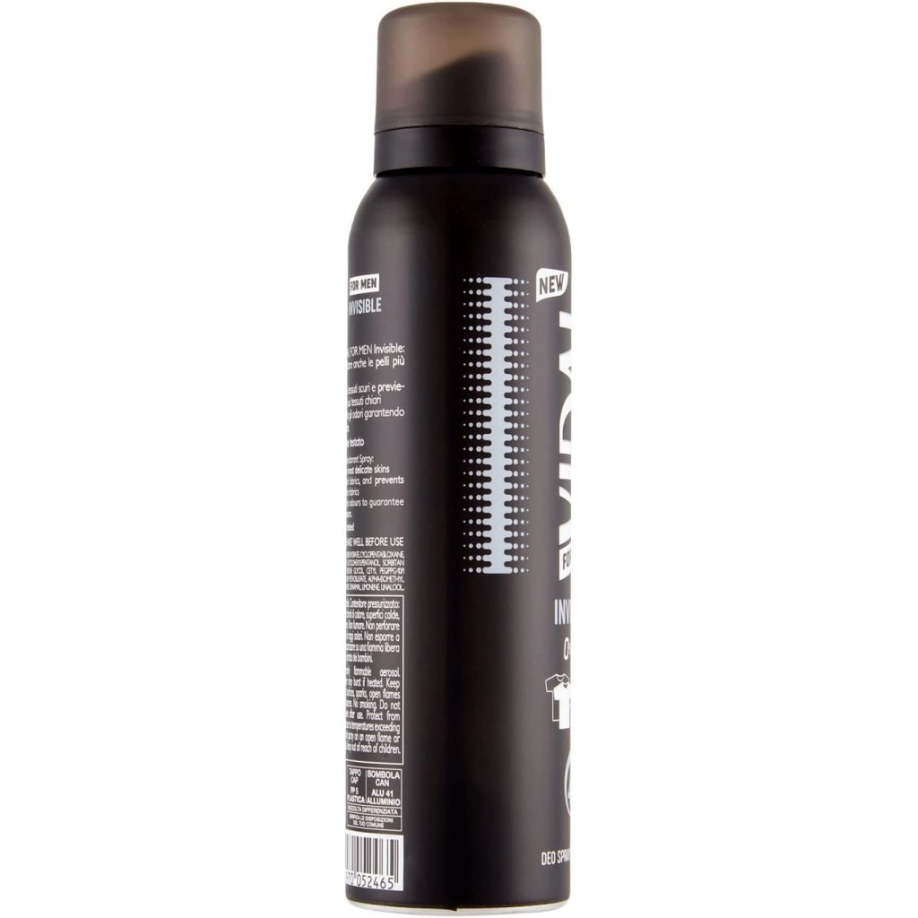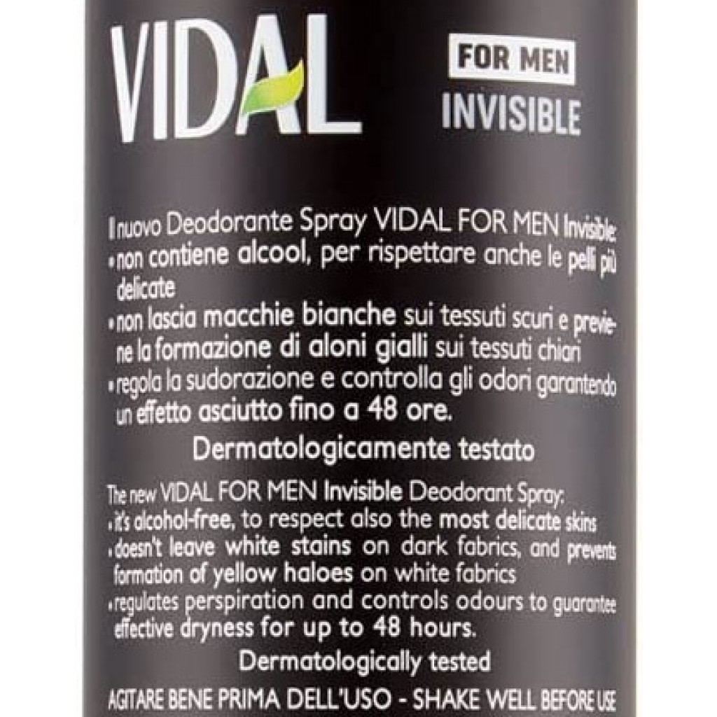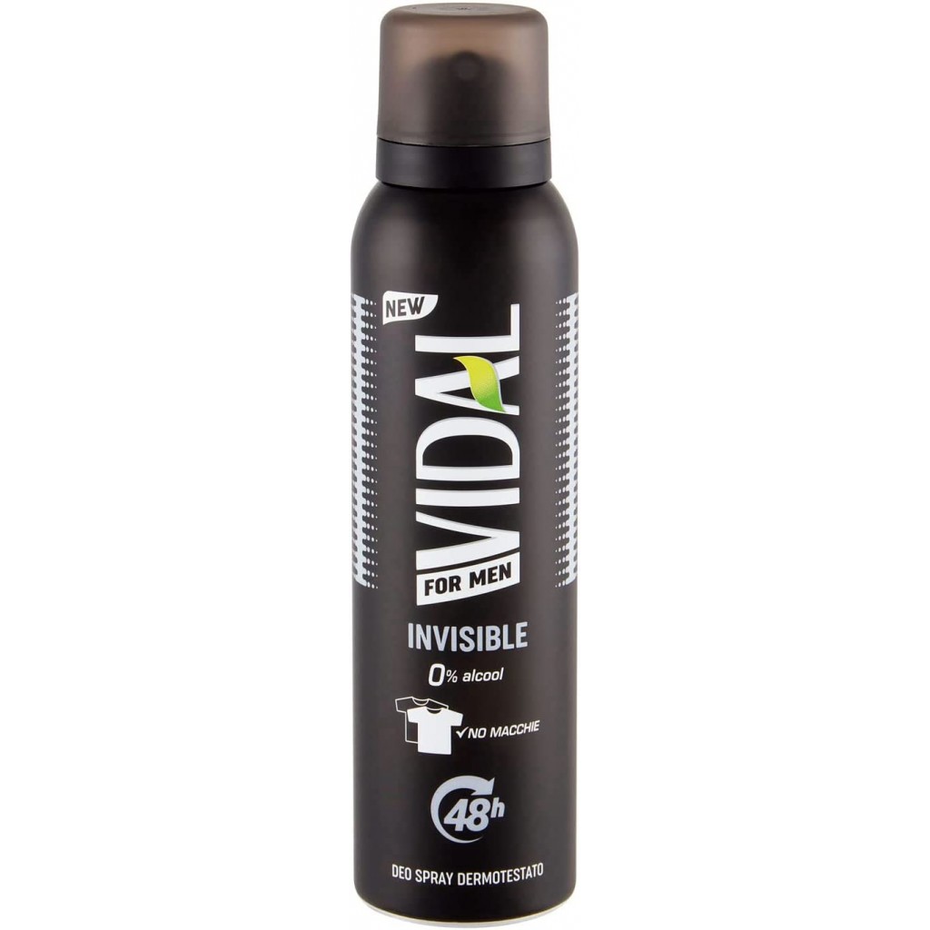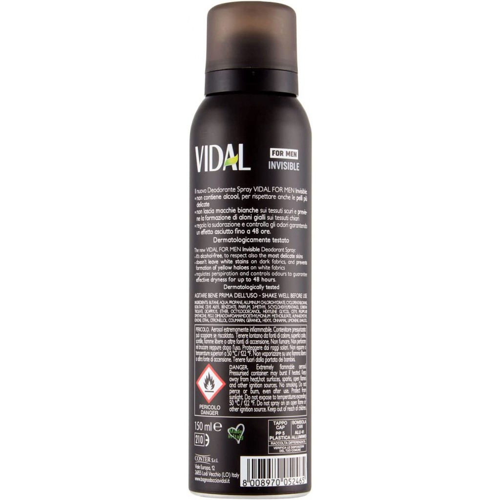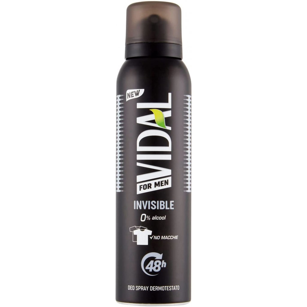 Vidal Deodorante Spray - 150ml - For Men Invisible 48h 0% Alcool No Macchie