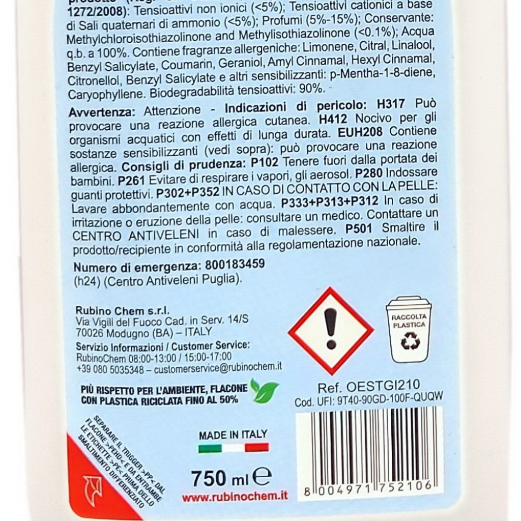 Estendi la ricerca a: deodoranti e profumatori per ambienti, pulizia e cura della casa, detergente, desodorizzante, fragranza, giallo, profumante, rubino, chem, ole', oies, ressenza, deodorante, multiuso, igienizzante, 750ml, gialla