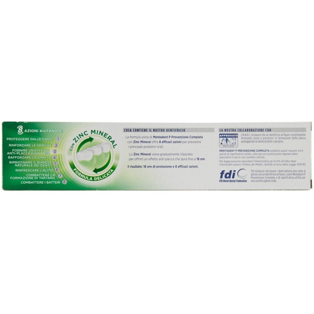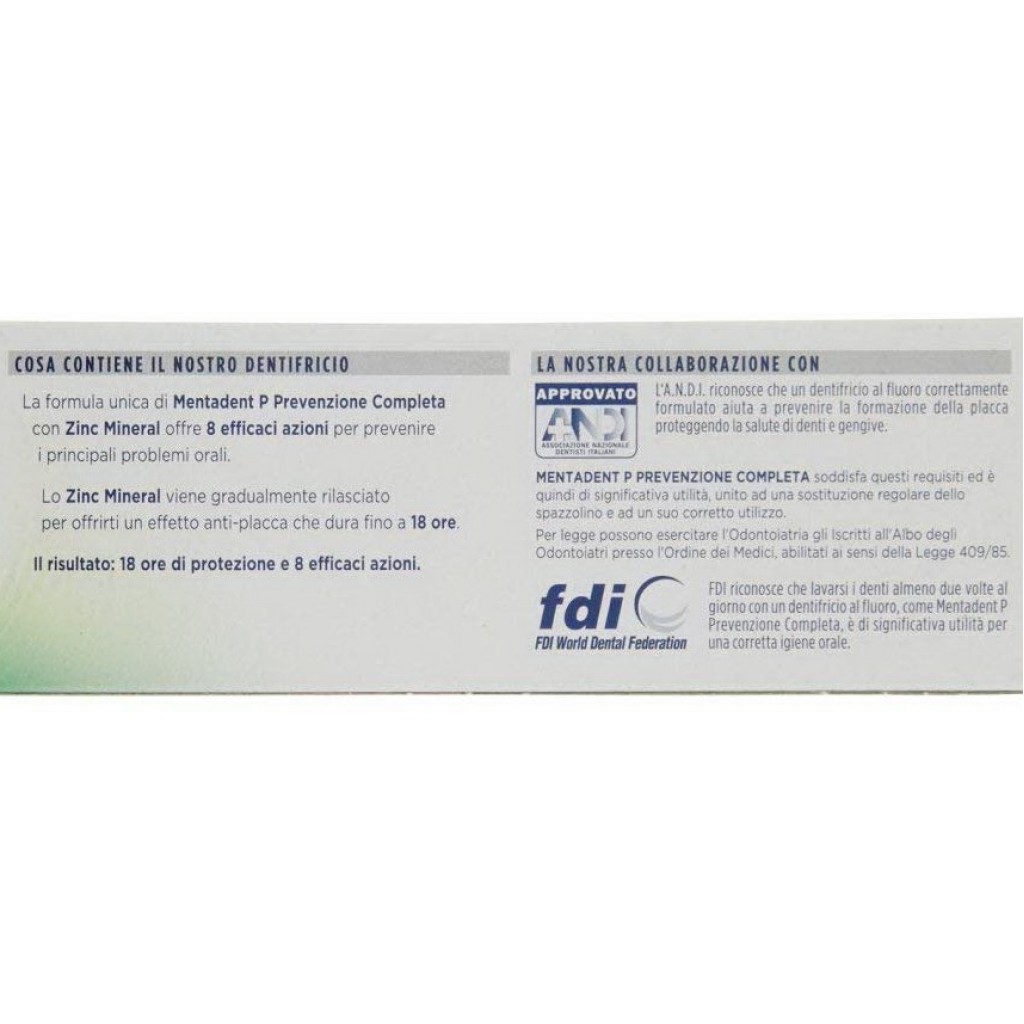 Estendi la ricerca a: dentifrici - igiene dentale e orale, igiene e cura della persona, igiene, dentale, orale, mentadent, dentifricio, 100ml, prevenzione, completa