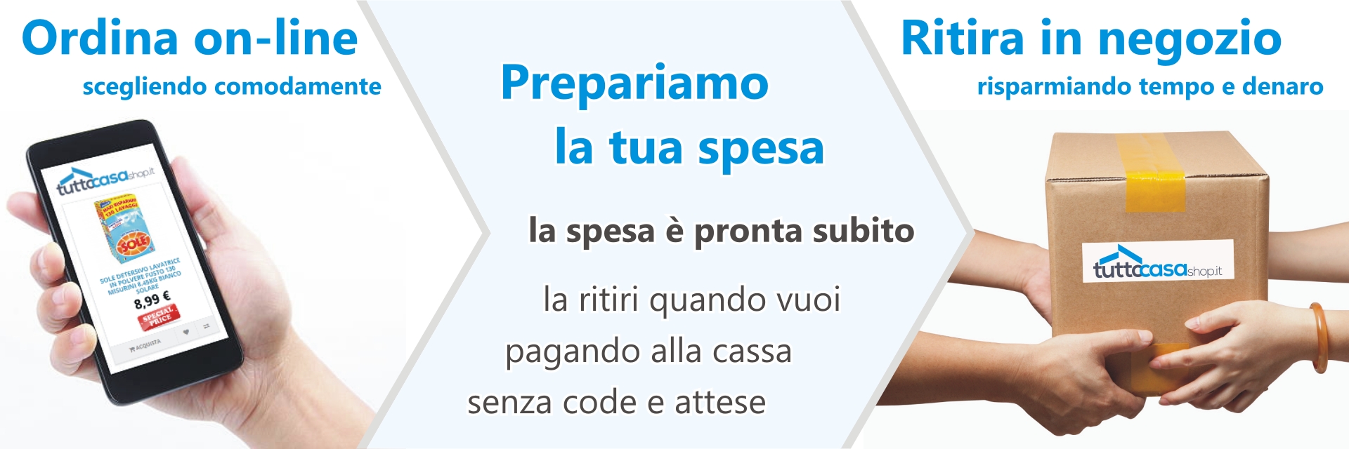Invii il tuo ordine comodamente da casa o lavoro, al resto pensiamo noi. A ricevimento del'ordine ti inviamo un email di conferma, poi un'altra email quando iniziamo a preparare il tuo ordine e infine, l'ultima email dove ti comunichiamo che puoi passare a ritirare la merce. Solo a quel punto tocca a te, basteranno pochi secondi alla cassa, troverai già tutto imbustato.